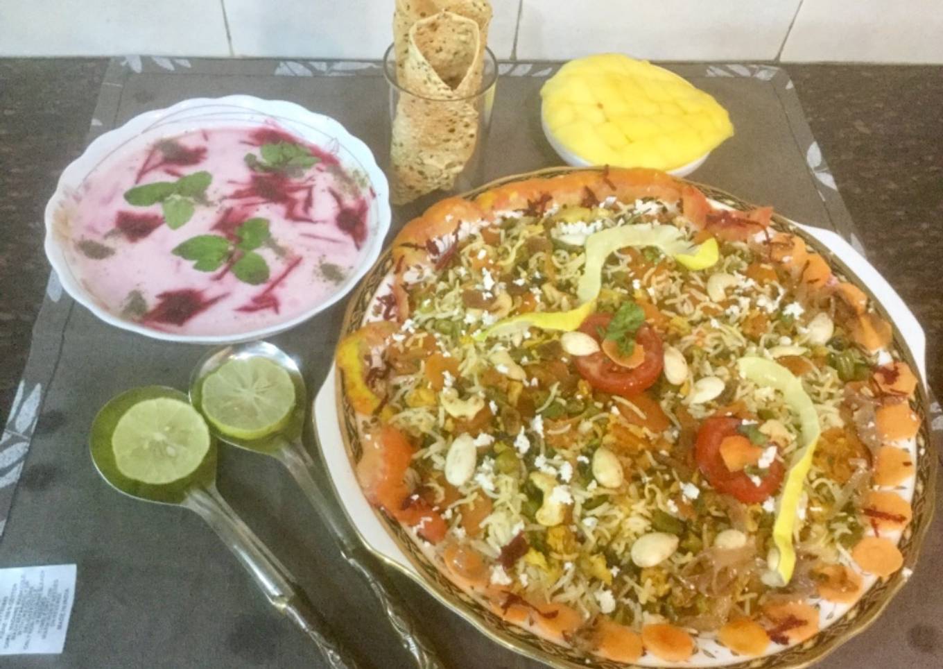 - Hyderabadi Veg Dum Biryani is ready to be served with raita,Papad or any side dish!Very aromat and filled with mixed flavours.We relish with our family when get together.